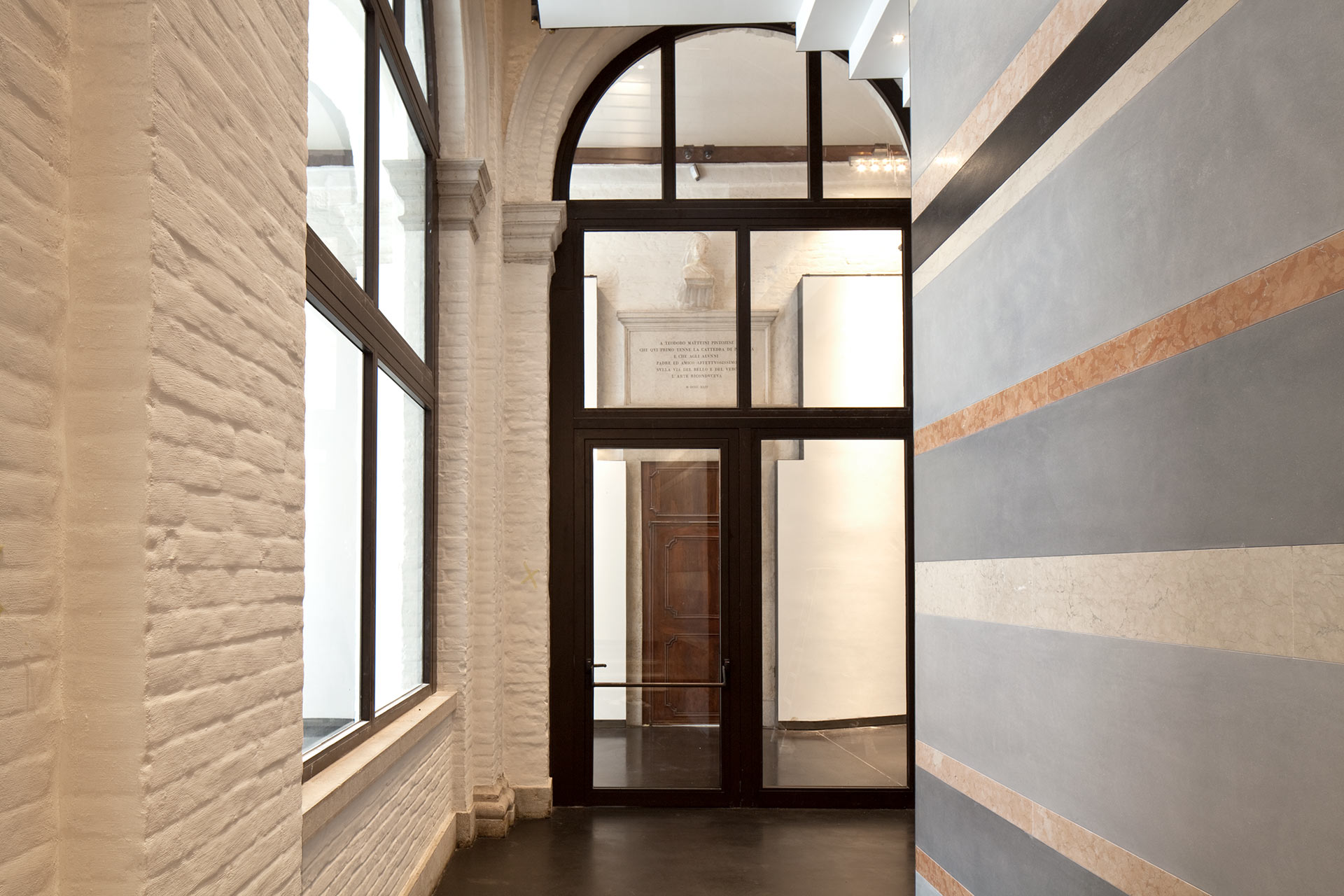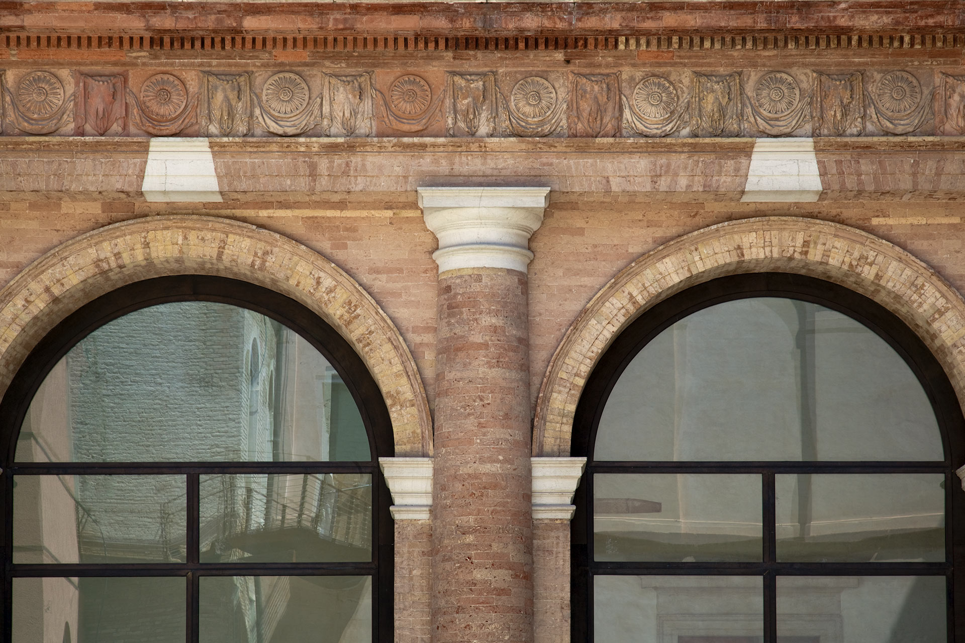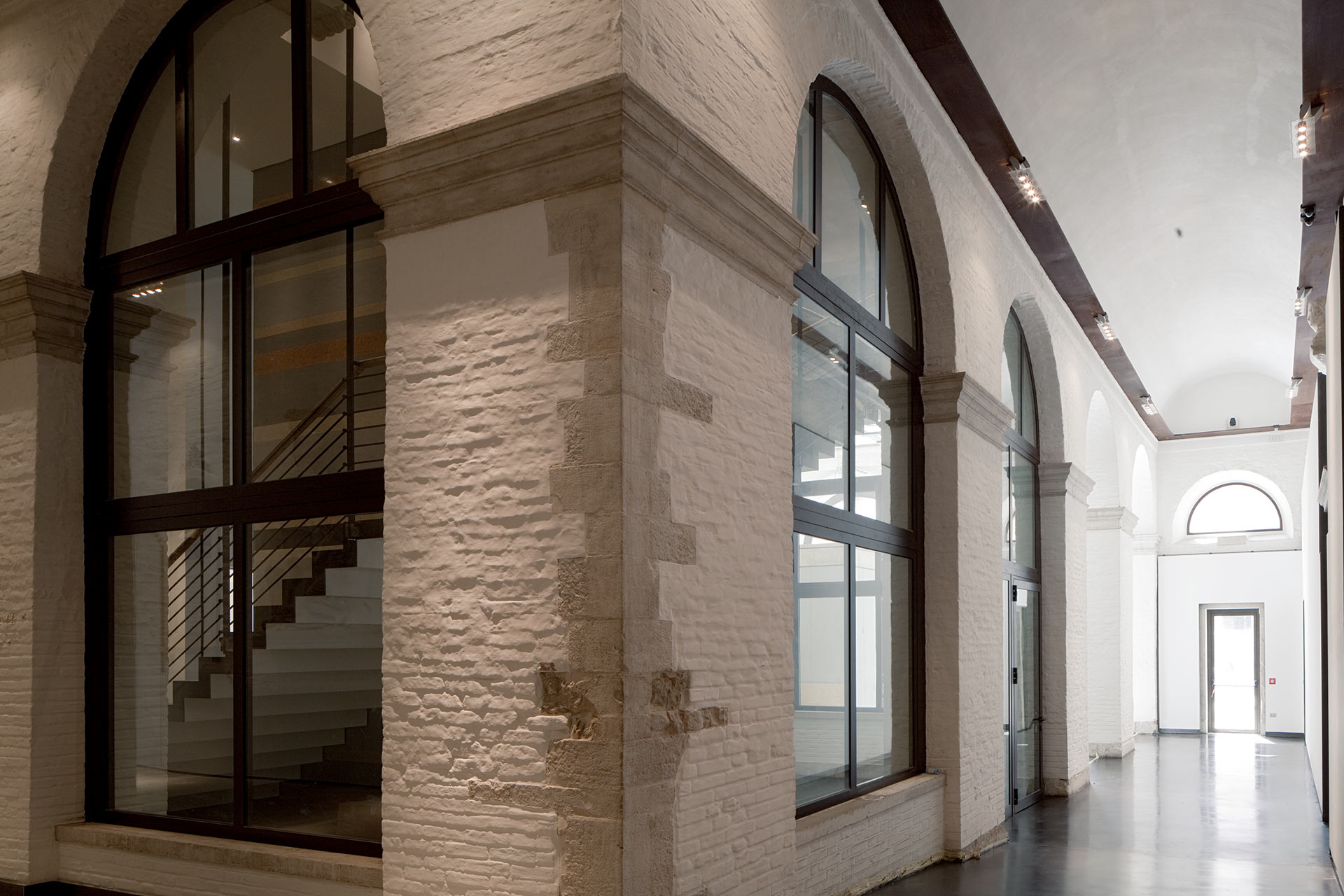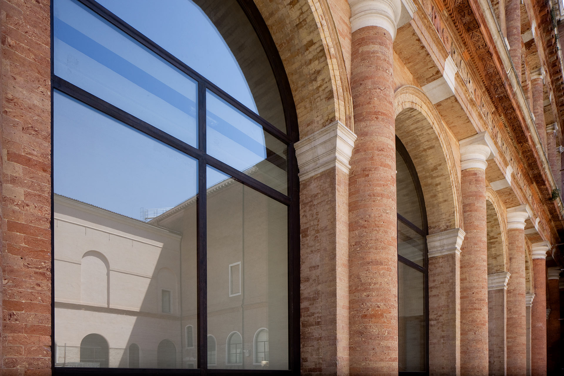 Le sezioni d’arco delle varie aperture sono state eseguite con la massima precisione ed eleganza di profilo, nel pieno rispetto dell’importante architettura.