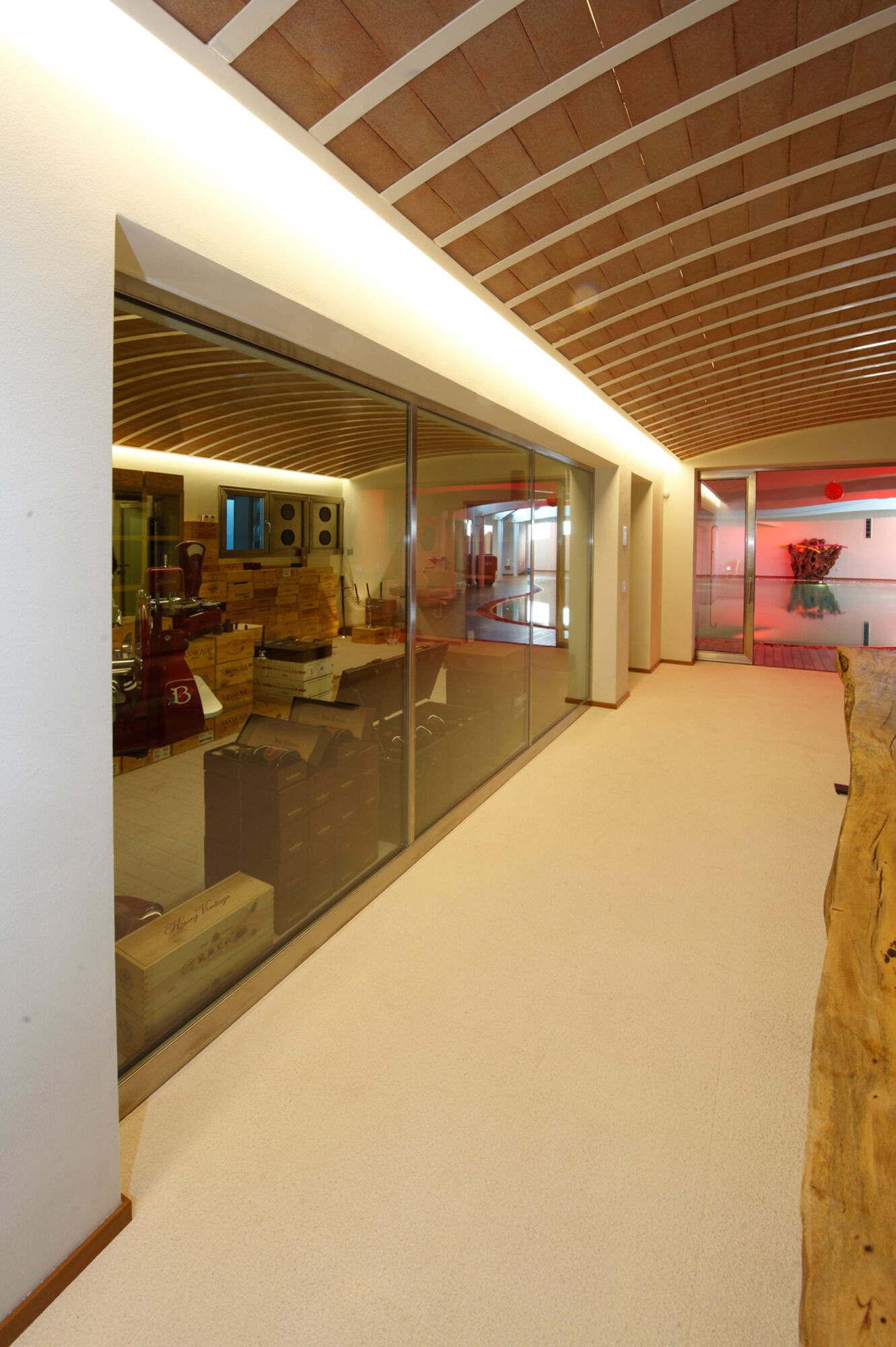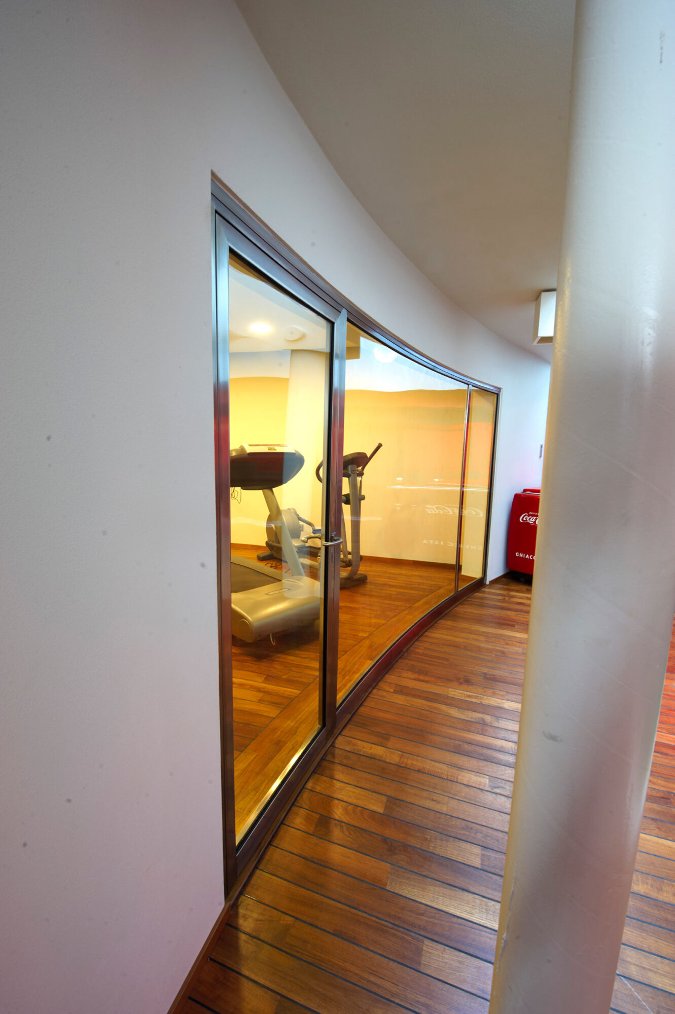 Serramenti in acciaio inox e grandi vetrate per uno spazio moderno e funzionale. Nel seminterrato della bellissima Villa Gritti, durante la fase studio del suo restauro, il proprietario ebbe l’idea di realizzare un’area dedicata al tempo libero, allo sport e al vino. Per soddisfare il desiderio del cliente di avere uno spazio funzionale e moderno, Brombal ha creato ed installato ampi serramenti in acciaio inox, dividendo i vari spazi in stanze. Sfruttando i profili a taglio termico è stato poi facile controllare la temperatura della cantina in cui si trova il vino, creando l’ambiente perfetto per conservarlo al meglio. È presente anche una palestra chiusa da una grande vetrata che la separa dalla piscina, ed una sauna, mentre un divisorio interno separa la cucina dalla sala da pranzo attraverso una grande vetrata. Interessanti sono alcune soluzioni di serramento curvilineo che segue la linea delle pareti. Si sono scelte dimensioni particolarmente ampie per le vetrate, riducendo al minimo il numero dei traversi portanti, creando così una continuità visiva tra i vari ambienti come la cantina, lo spazio living, la zona accoglienza, la palestra e la piscina.