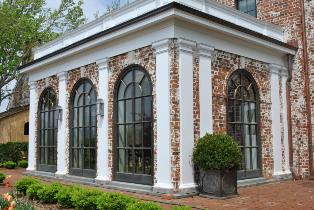 Serramenti in ottone brunito e tecnologia a taglio termico per una casa di campagna storica. La ristrutturazione di questa classica casa di campagna della Virginia ha richiesto una particolare attenzione in quanto edificio iscritto al Registro Nazionale dei Luoghi Storici. Lo studio di architettura ha dovuto dunque lavorare in stretta collaborazione con il Dipartimento delle Risorse Storiche e adempiere a requisiti molto rigorosi per garantire che la ristrutturazione finale mantenesse la casa in linea con il progetto originale. Brombal è stato in grado di garantire questa originalità fornendo infissi a taglio termico in ottone brunito che potessero adattarsi a tutti i dettagli estetici e architettonici richiesti. Sono state realizzate porte a due ante ad arco in stile francese con finitura anticata ma con all’interno la moderna tecnologia a taglio termico. Per avvicinarsi il più possibile allo stile dell’epoca sono stati inoltre utilizzati fermavetri di tipo inclinato per creare il più possibile lo stile dell’epoca. Particolare attenzione è stata richiesta nella progettazione degli spessori del serramento stesso, in modo da ricreare quelle armoniche lesene tra i vari elementi architettonici di congiuntura delle eleganti porte e finestre, conferendo leggerezza nel rispetto di un disegno architettonico rigorosamente classico.