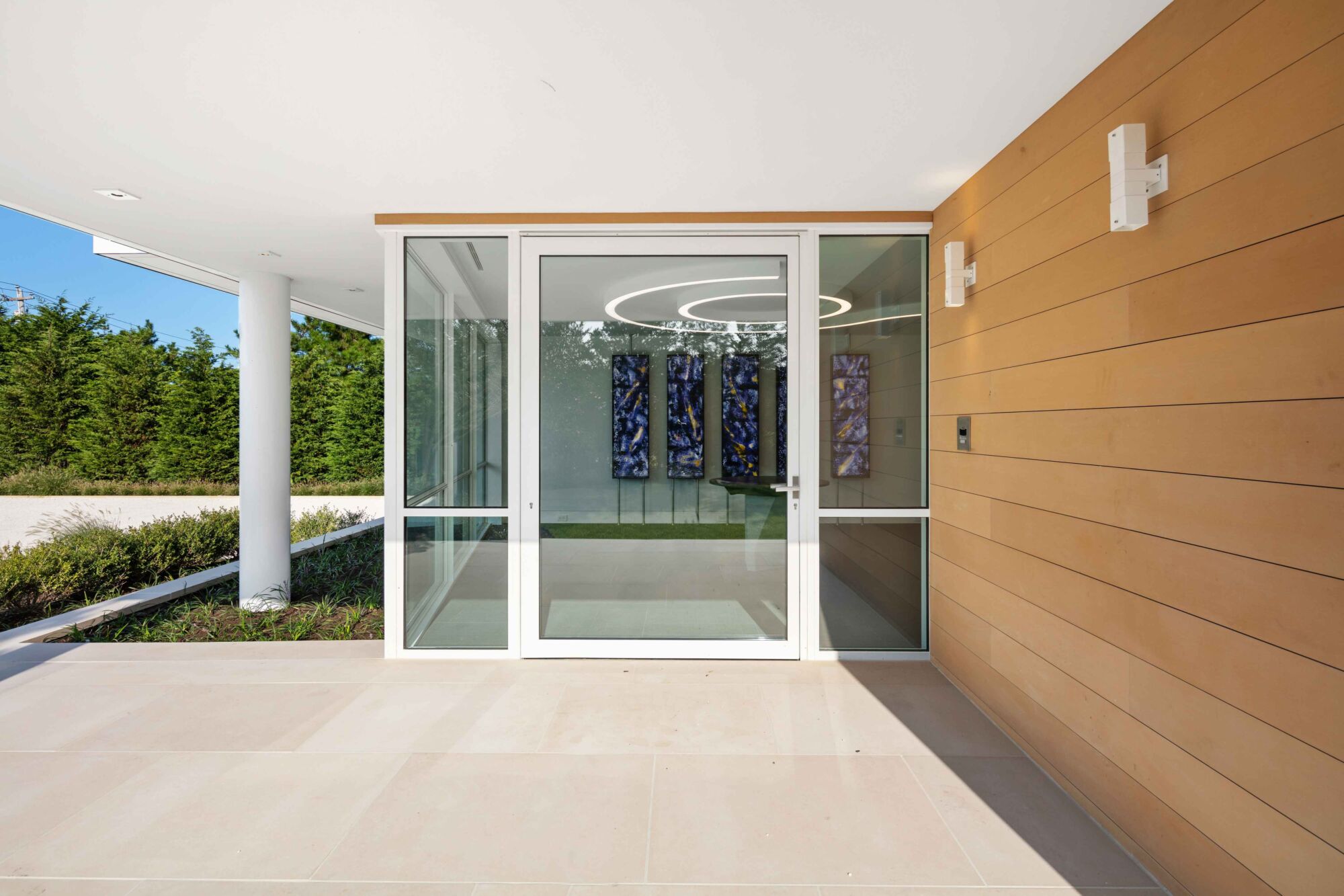 Da ogni scorcio e da ogni posizione di questa residenza, risalta la grazia di un’architettura sofisticata e raffinata, come l’ingresso principale, una signorile porta pivot che ruotando attorno al proprio asse verticale si aprirà manifestando, fin dal primo accesso, l’architettura distinta e ricercata di questa residenza di lusso.