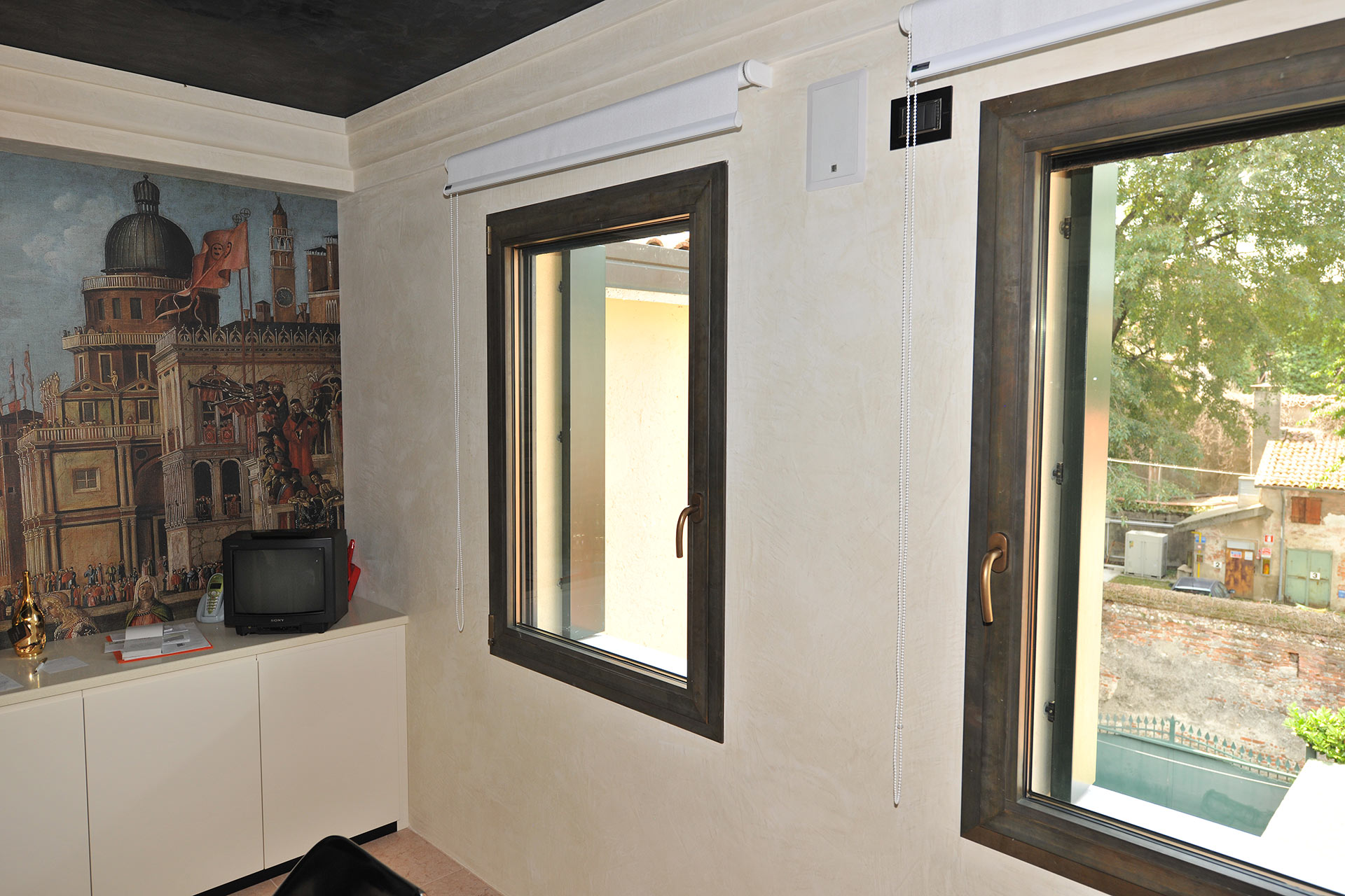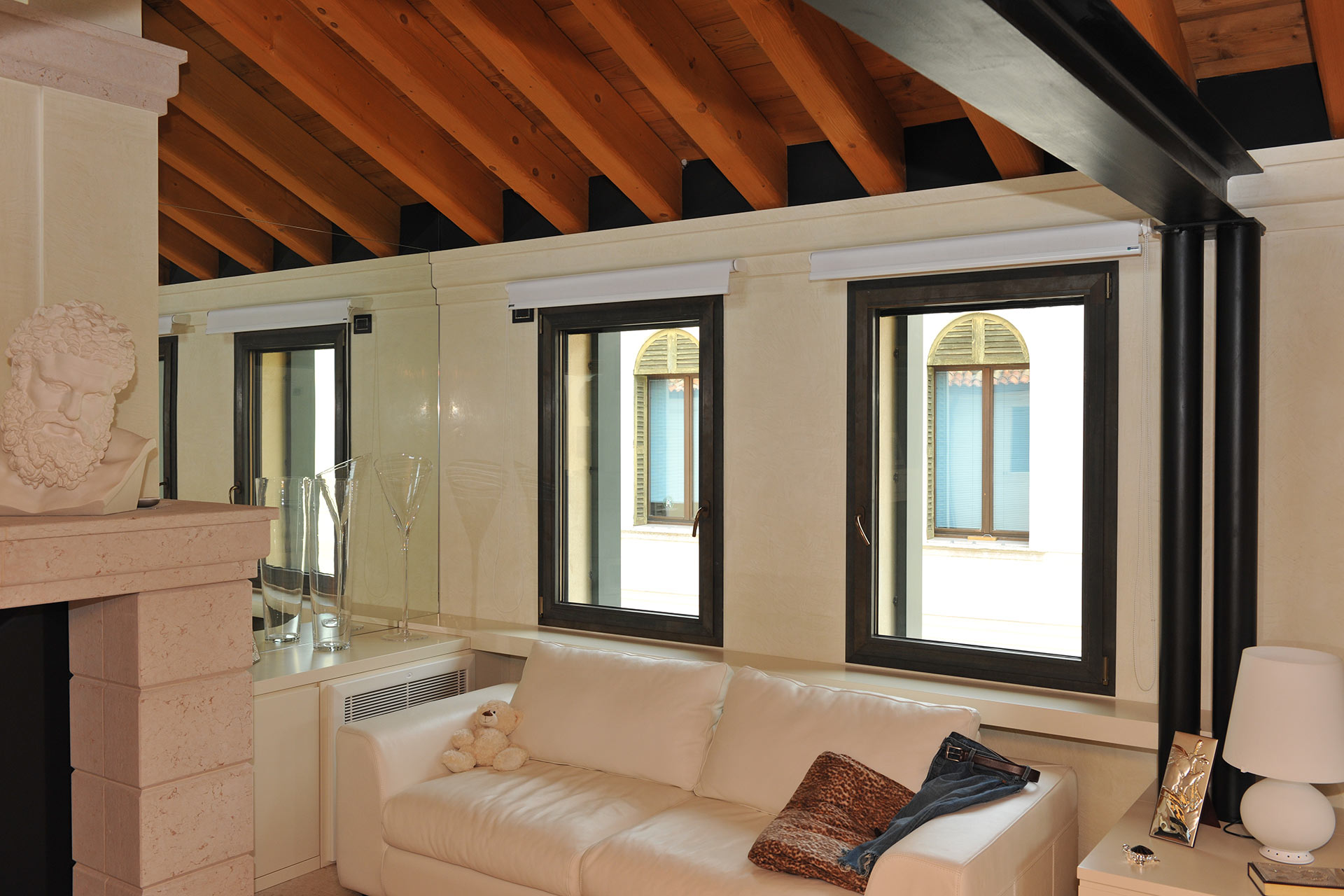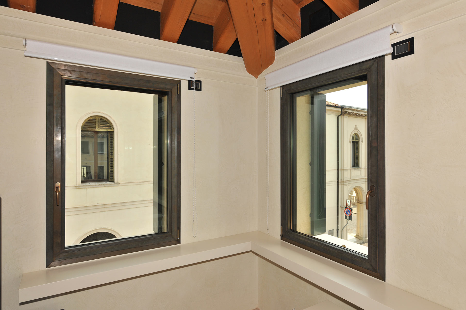 Un attico contemporaneo con infissi in ottone per uno stile di vita moderno. I proprietari di questo attico di notevoli dimensioni situato in centro della città diedero indicazioni molto precise sullo stile moderno che questo grande spazio avrebbe dovuto avere. La luce naturale avrebbe dovuto giocare il ruolo principale. La casa infatti è caratterizzata dalla presenza di numerose finestre che circondano tutta la struttura permettendo di sfruttare al massimo la luce diurna oltre a dare la possibilità di avere una vista a 360°. I serramenti in ottone brunito hanno dato un tocco di eleganza a questo spazio moderno. Al piano superiore è stata installata una porta scorrevole a taglio termico di grandi dimensioni che consente l’accesso alla terrazza fornendo una spettacolare vista sul castello medievale. Ottimo esempio di restauro architettonico grazie alla tecnologia impiegata per l’apertura di ampie vetrate Brombal su una splendida altana che rivalorizza dal punto di vista della vivibilità un edificio storico del centro di Castelfranco Veneto.