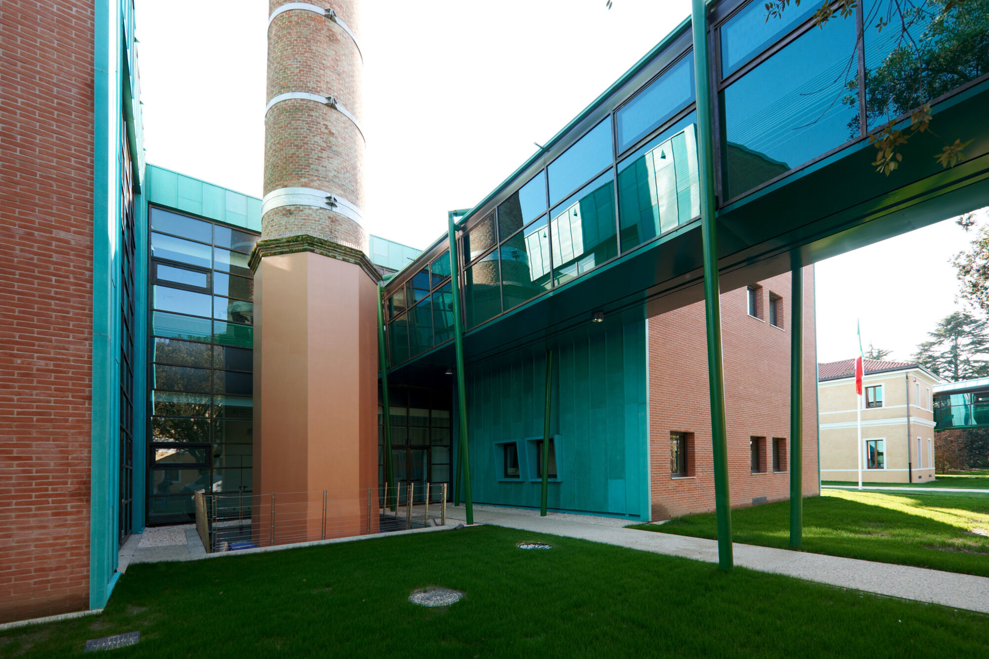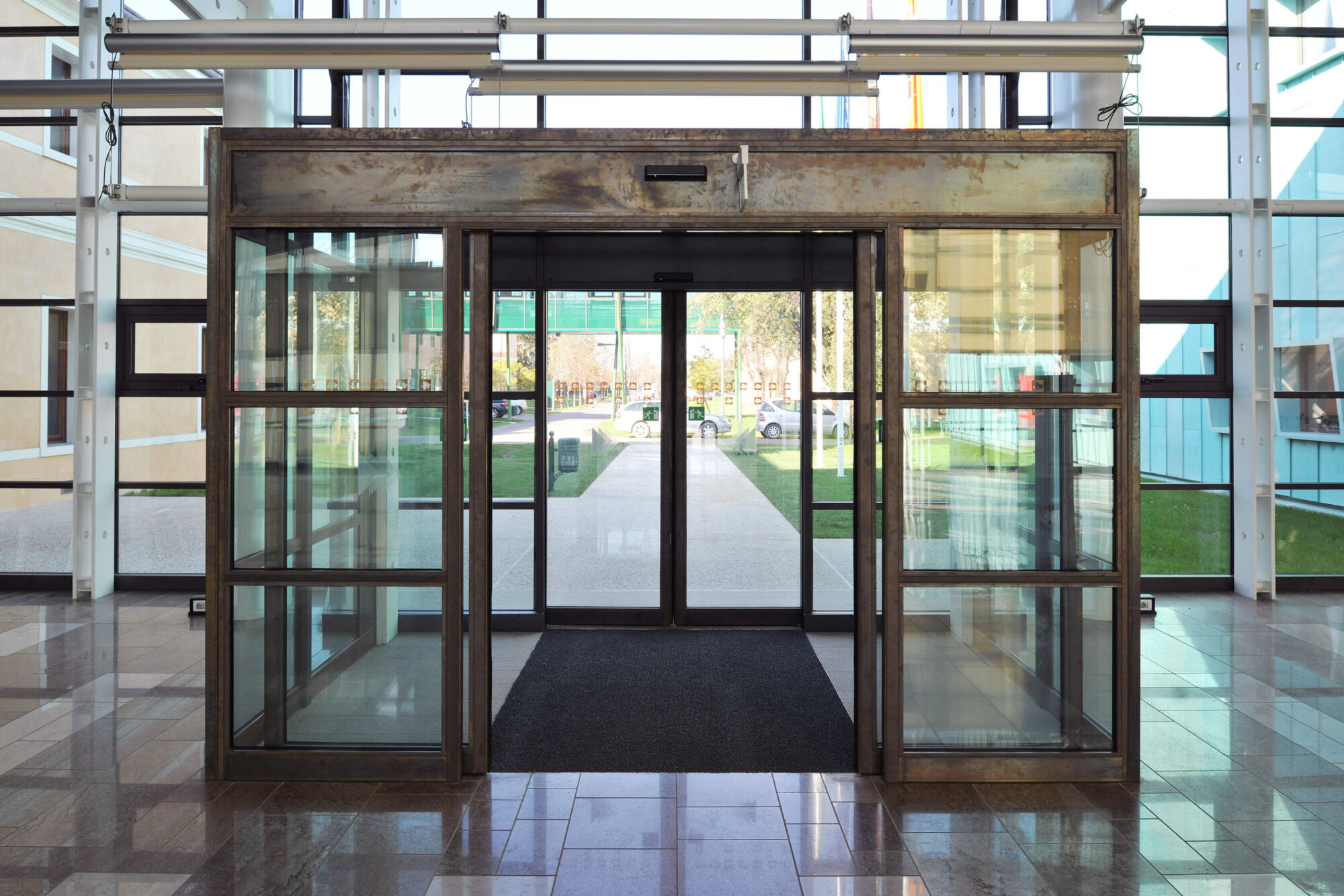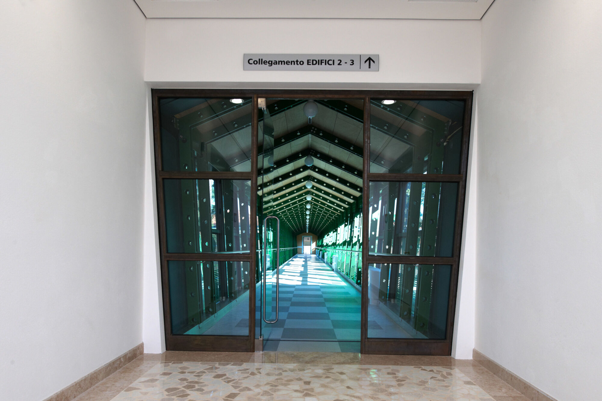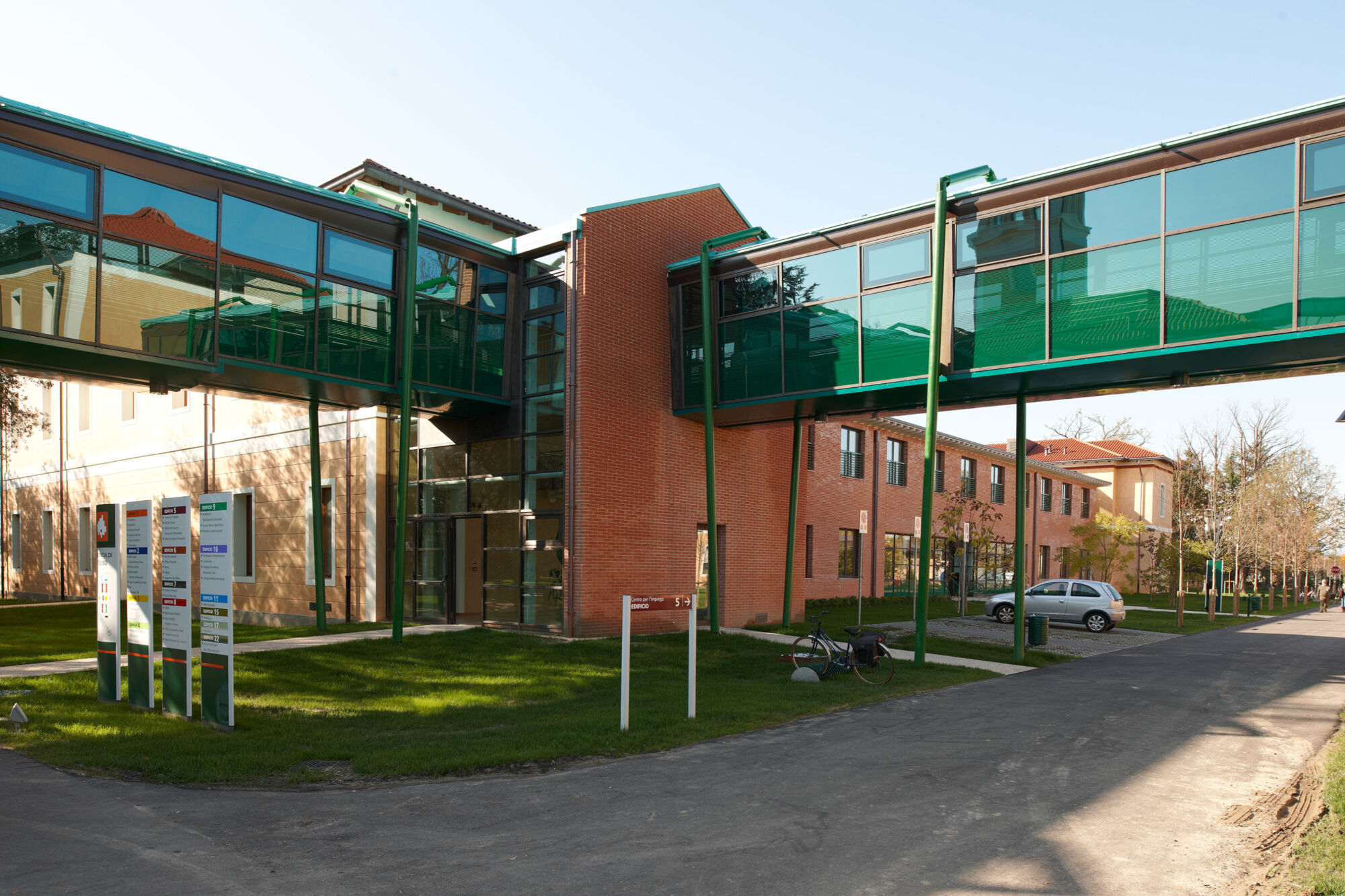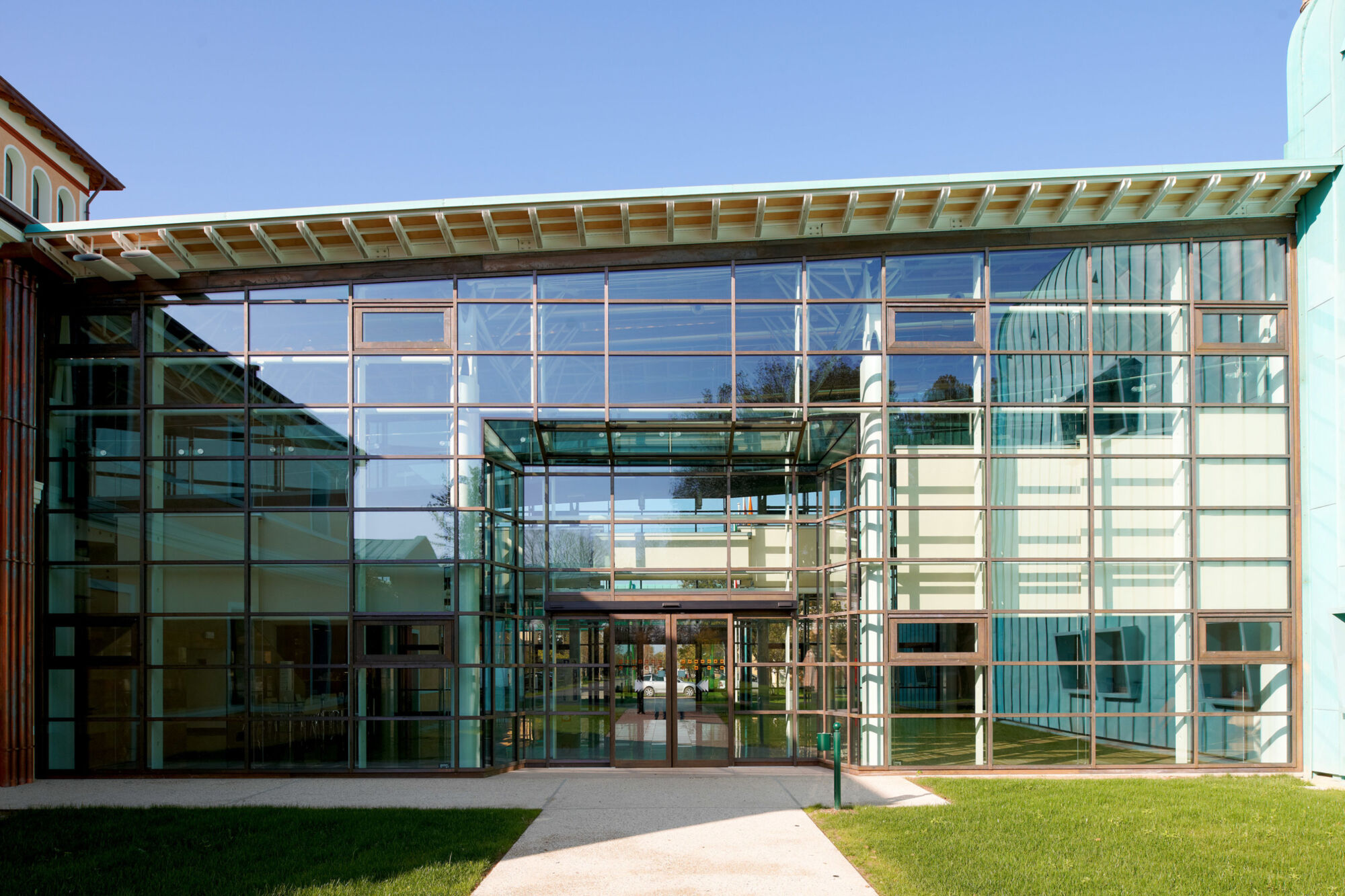 Un grande complesso pubblico con enormi facciate continue e struttura in bimetallo. Il progetto per questo grande complesso, sviluppato per la sede centrale della provincia di Treviso, ha implicato sia un rinnovamento di tipo funzionale della struttura preesistente sia la creazione di nuovi spazi. Brombal ha fornito l’intero sistema di vetrate, le cui parti principali sono essenzialmente due: la grande facciata continua all’ingresso e i tunnel fenestrati sopraelevati che fungono da collegamento tra i vari edifici che compongono la struttura. I serramenti e i sistemi a facciata continua sono stati realizzati in materiale bi-metal, acciaio zincato all’interno in 3 diversi colori, ed esternamente in ottone sfruttando la sua capacità di resistere agli agenti atmosferici. La Cittadella della Provincia di Treviso rappresenta un caso di architettura eclettica dove più elementi contemporanei formati da vetrate, coperture e gallerie realizzate con i serramenti Brombal si sono innestati nei volumi architettonici del vecchio complesso edilizio “Sant’Artemio”, dando nuova dinamicità al compendio novecentesco.