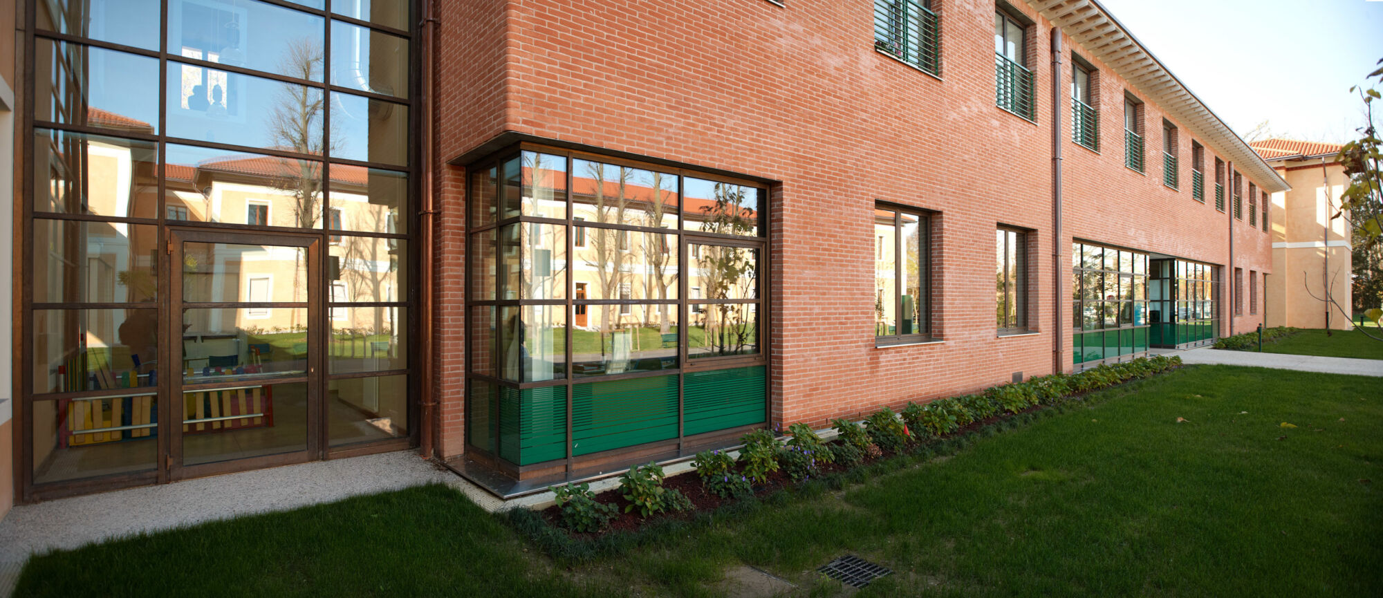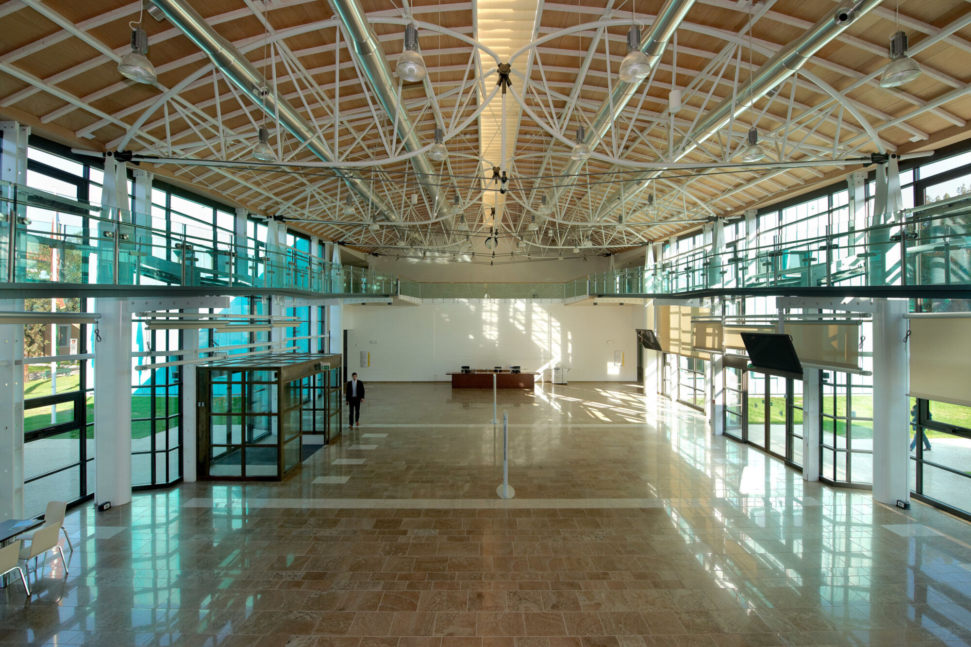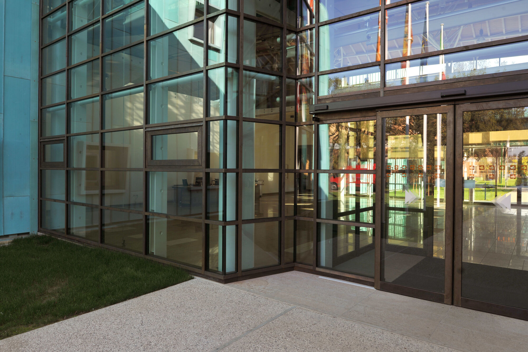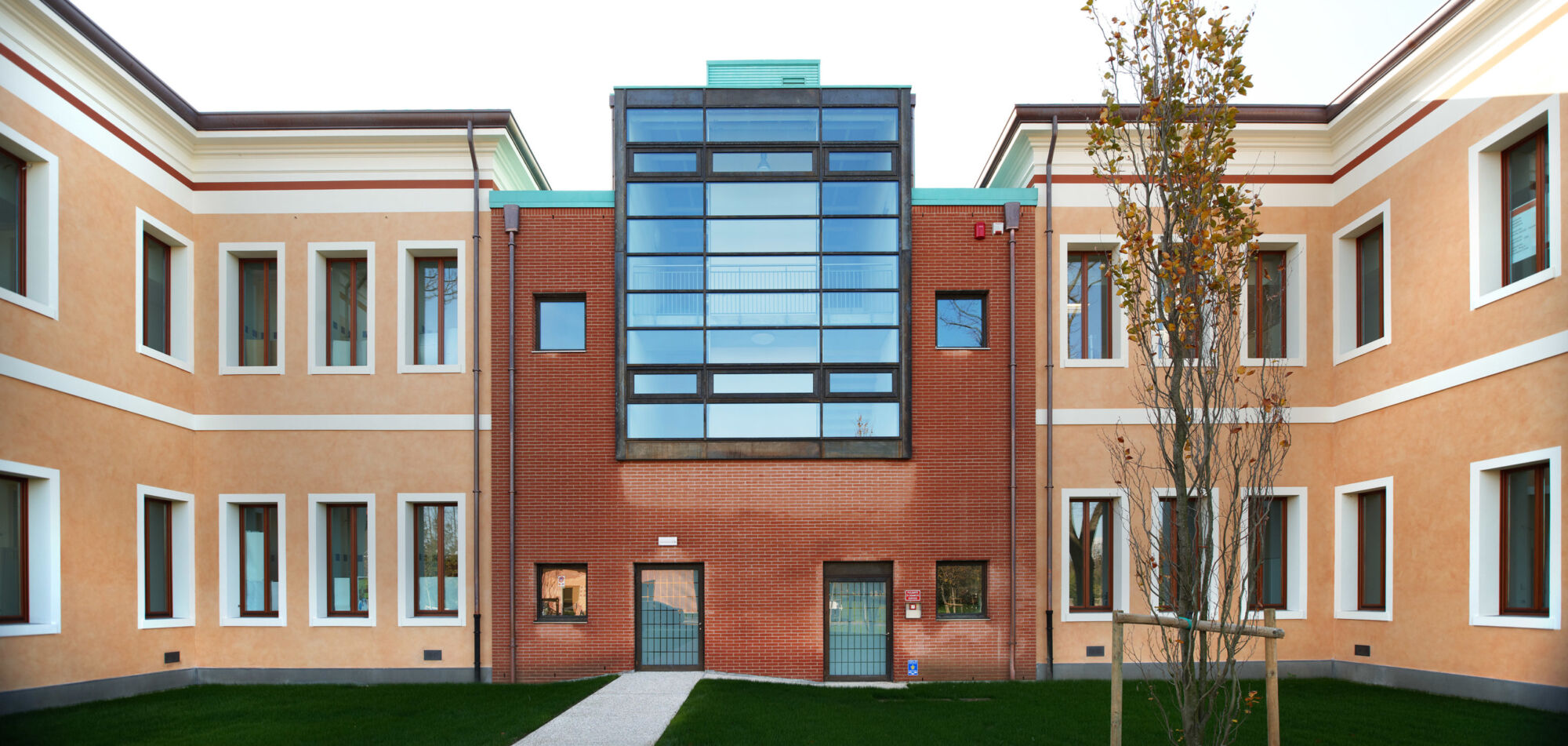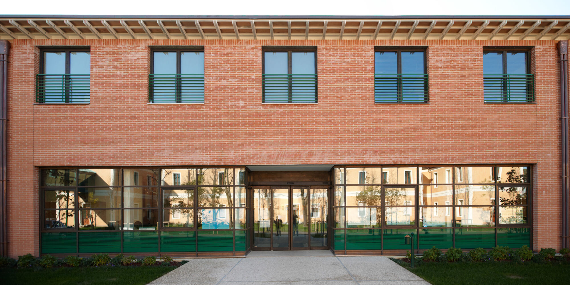 Un grande complesso pubblico con enormi facciate continue e struttura in bimetallo. Il progetto per questo grande complesso, sviluppato per la sede centrale della provincia di Treviso, ha implicato sia un rinnovamento di tipo funzionale della struttura preesistente sia la creazione di nuovi spazi. Brombal ha fornito l’intero sistema di vetrate, le cui parti principali sono essenzialmente due: la grande facciata continua all’ingresso e i tunnel fenestrati sopraelevati che fungono da collegamento tra i vari edifici che compongono la struttura. I serramenti e i sistemi a facciata continua sono stati realizzati in materiale bi-metal, acciaio zincato all’interno in 3 diversi colori, ed esternamente in ottone sfruttando la sua capacità di resistere agli agenti atmosferici. La Cittadella della Provincia di Treviso rappresenta un caso di architettura eclettica dove più elementi contemporanei formati da vetrate, coperture e gallerie realizzate con i serramenti Brombal si sono innestati nei volumi architettonici del vecchio complesso edilizio “Sant’Artemio”, dando nuova dinamicità al compendio novecentesco.