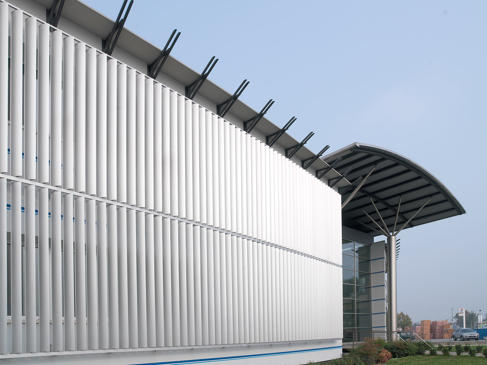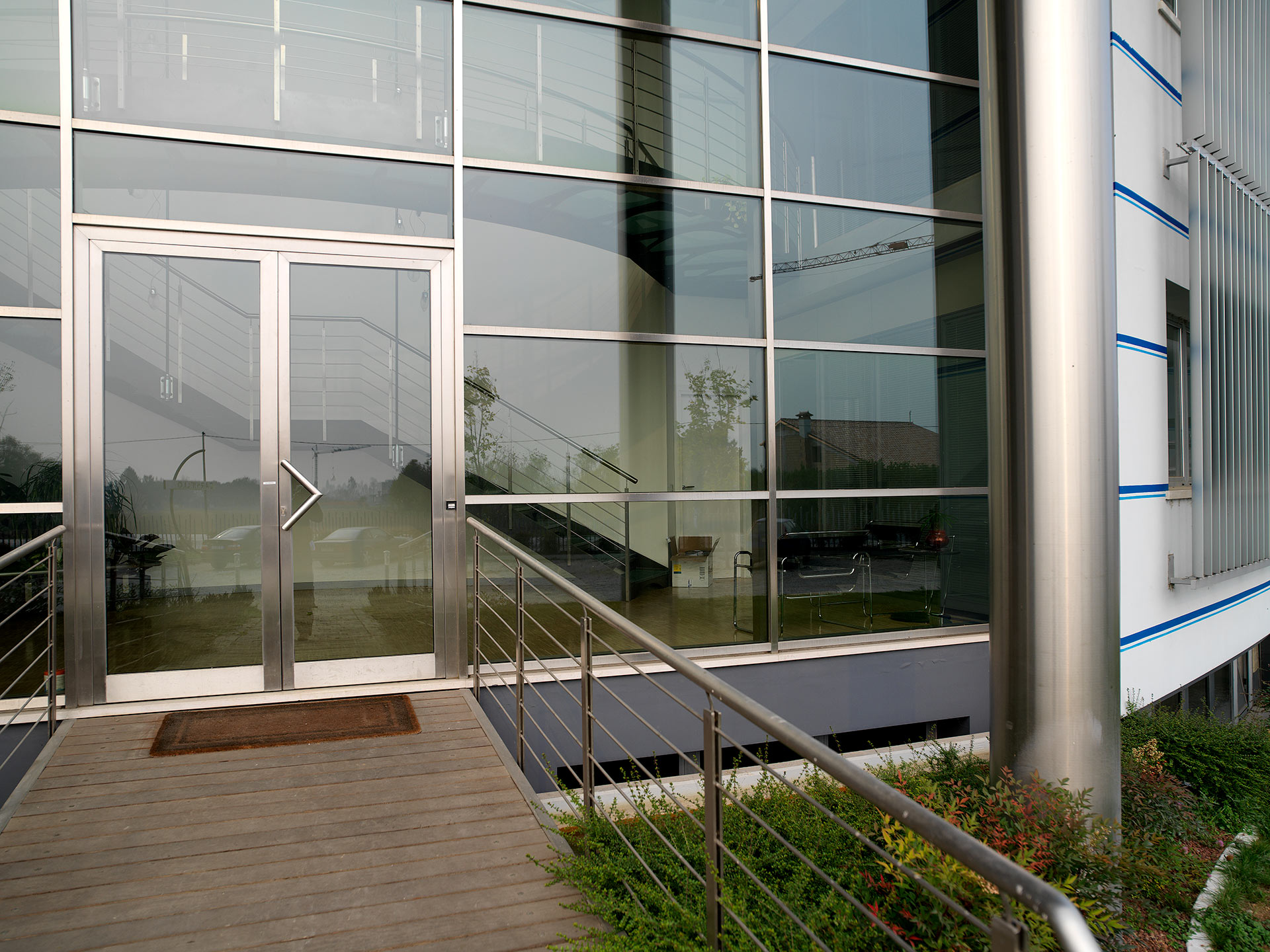 Large curtain wall for a modern look and high efficiency. The project to build the new offices of this well-established manufacturing company, with a long tradition in steel products was very challenging. From an architectural point of view, the main entrance had to appear majestic and offer a very bright lobby letting the daylight flood into this huge space. Brombal provided a floor-to-ceiling fenestration system creating the company’s massive glass facade. Stainless Steel curtain wall was used both in the entrance and lateral office windows, giving a modern look to the structure. Anticipating first time visitor to see their skill with working with metal.