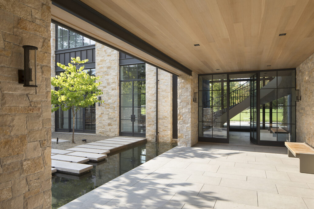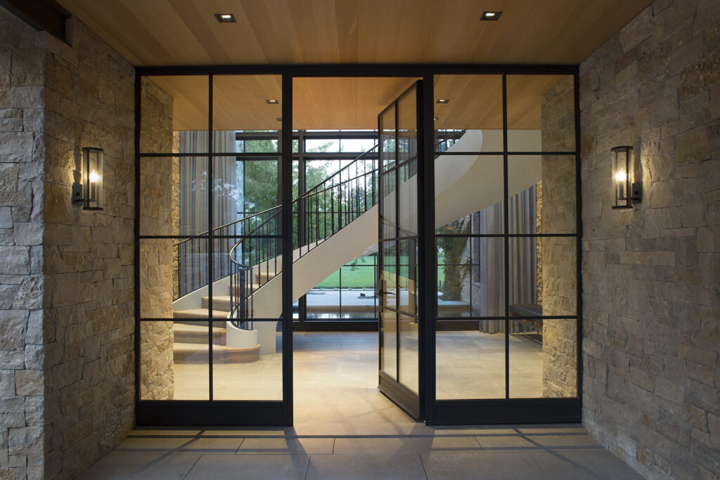 A complex high-efficiency building with ample thermally broken windows & doors. This huge and complex project was the homeowners’ dream for a long time. Built mainly with stone, it is enriched with wooden and metal walls, giving the feeling the house is composed by different structures. Due to the dimensions, the first requirement was to open the house to the daylight, installing massive doors all around the house. Brombal created high floor-to-ceiling glazed structures to maximize the exposure to the light of rooms. Big thermally Broken Galvanized steel doors and windows guarantee high efficiency insulation and a particularly strong weather-resistance.